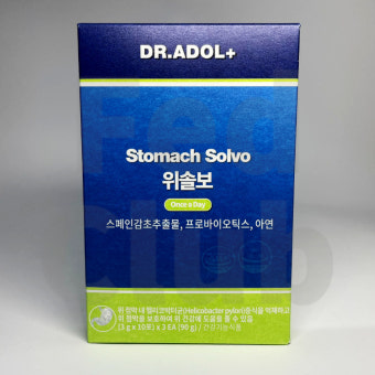 **닥터아돌 위솔보(Dr. ADOL W-Solvo)**는 위 점막을 보호하고 헬리코박터균 증식을 억제하여 속 건강을 지켜주는 영양제예요. 스페인감초추출물, 프로바이오틱스, 아연 등 위와 장에 도움을 주는 성분이 균형 있게 배합되어 있습니다. 특히 자극적인 음식 섭취나 불규칙한 식습관으로 위 불편함을 자주 겪는 현대인에게 적합하죠. 한 포씩 낱개 포장된 분말형으로 휴대가 간편하고, 고소한 맛 덕분에 거부감 없이 먹을 수 있어요.