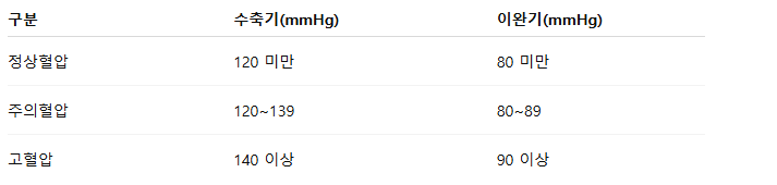 🩸 대한고혈압학회 기준에 따른 혈압 구분표