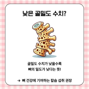 골밀도는 단순한 숫자가 아니라, 골절 가능성과 직접 연결되는 지표입니다. 고관절·척추 골절은 회복이 어렵고 후유증도 큰 편이기 때문에 골밀도를 정기적으로 확인하는 것이 예방에 매우 중요합니다.