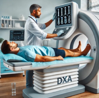 - DXA 기기에 누워 요추와 대퇴골을 촬영합니다.