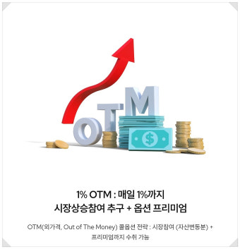 OTM은 'Out of The Money(외가격)'의 약자입니다. 현재 주가보다 더 높은 가격(예: +1% 위)에 콜옵션을 파는 전략입니다. 쉽게 말해 "오늘 나스닥이 1% 넘게 폭등하지 않으면, 그 1%까지는 수익을 내가 먹겠다"는 뜻입니다.